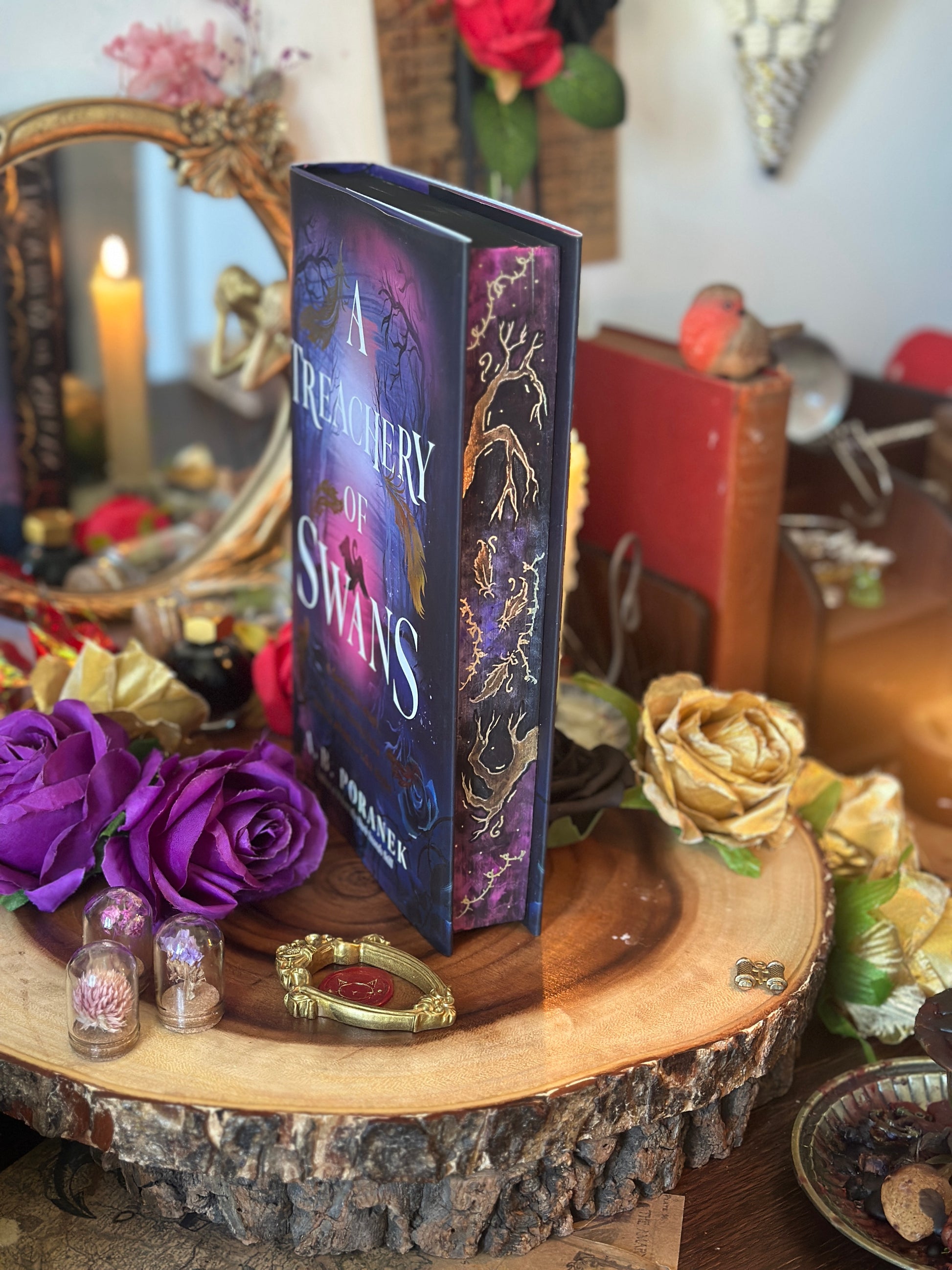 A Treachery of Swans hand-painted book edges - book by A.B. Poranek- SPECIAL EDITION BOOK