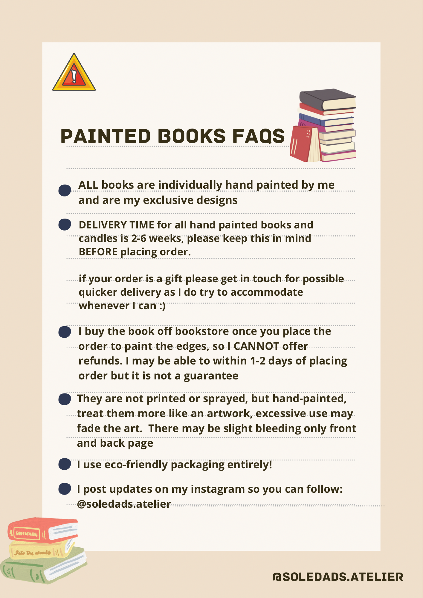 ALL BOOKS ARE MADE TO ORDER, WITH NO RETURNS AFTER I PURCHASE THE BOOK TO PAINT ON - PLEASE SEE DELIVERY TIME IN ADVANCE (2-3 weeks)