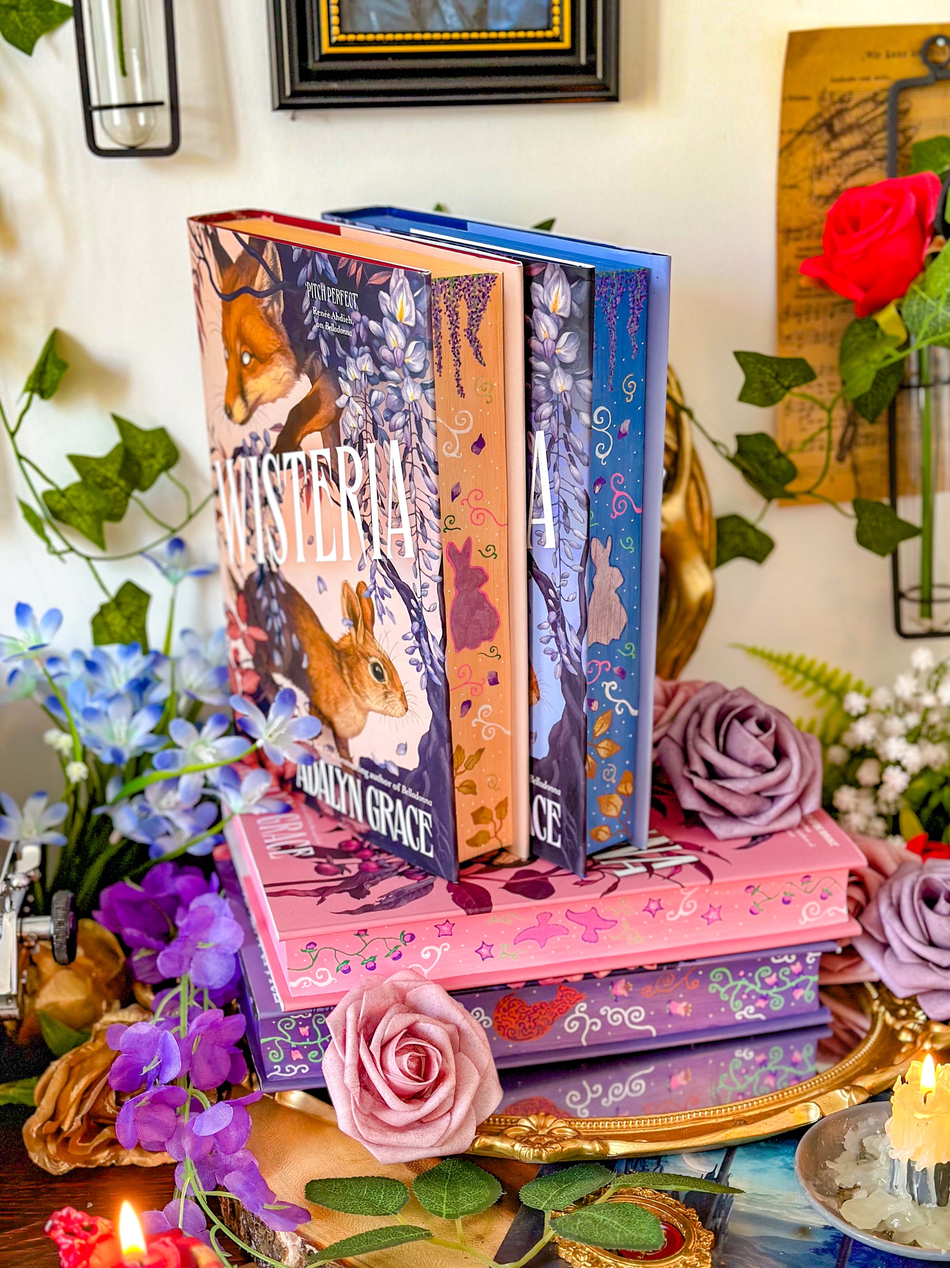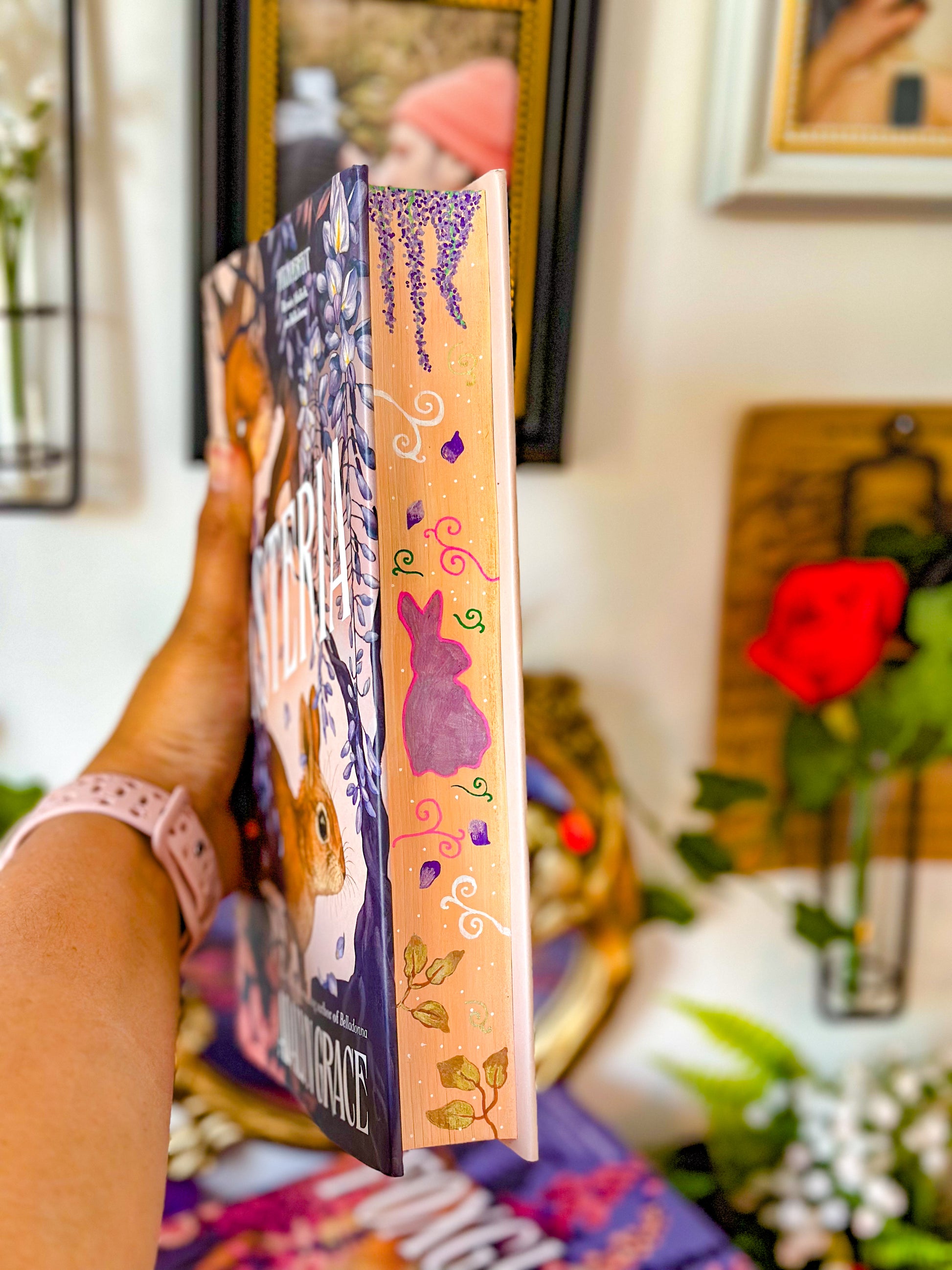 HAND-PAINTED BOOK EDGES of Wisteria by Adalyn Grace (final in the Belladonna and Foxglove series)